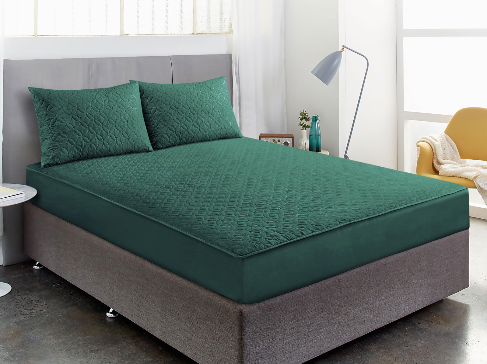Luxury Waterproof Fitted Sheet with Pillow_IN_DARK GREEN
